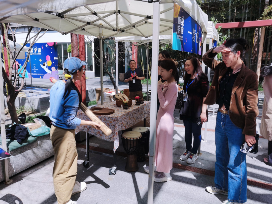 现场的主题演出精彩纷呈,包括上海存粹文化传播有限公司的管弦乐表演与旗袍秀、吴式太极第六代传人王超的太极拳展示、一境忆工作室的少数民族鼓乐吟唱,以及民间发明家韩毓敏利用废弃物品的创新发明展示。这些活动不仅丰富了公众的艺术文化体验,也通过展示生活物件的再利用和手作疗愈美物,让人们感受到艺术与生活的紧密联系,激励孩子们在生活中发现和追求美好。