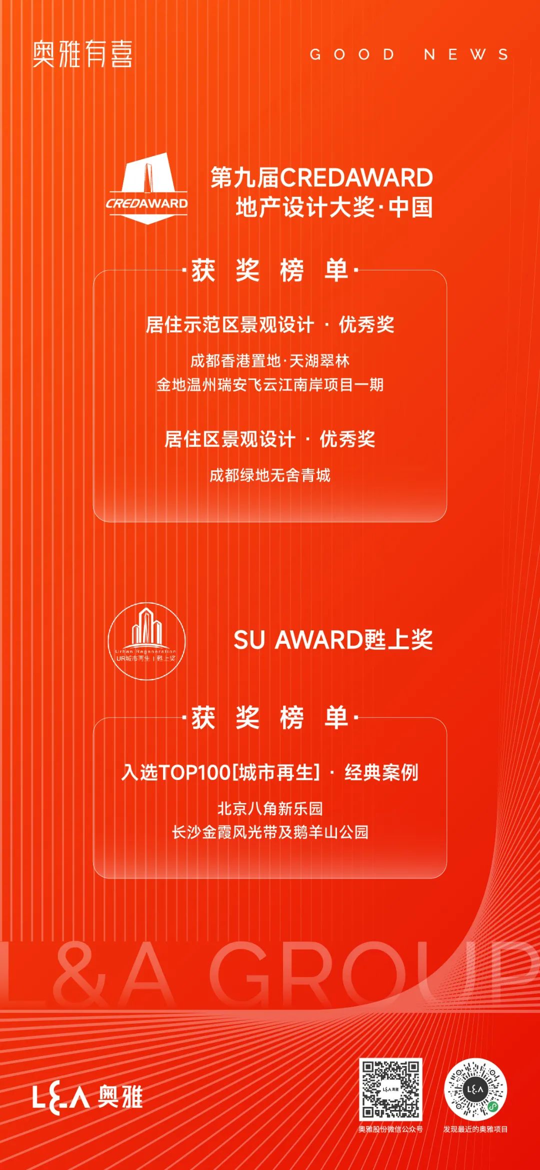 值得一提的是,在不久前结束的首届SU AWARD甦上奖评选中,奥雅股份项目北京八角新乐园、长沙金霞风光带及鹅羊山公园从一众优秀项目中脱颖而出,成功入选TOP100【城市再生】经典案例!