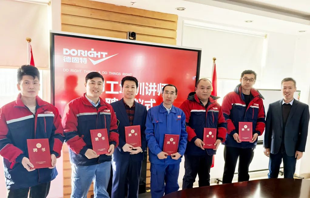 11月29日,德固特召开了铆工培训讲师聘任仪式,聘任来自工艺、质量、制造的11名同事作为铆工培训讲师,标志着公司在铆接人才培养方面又迈出了一步。