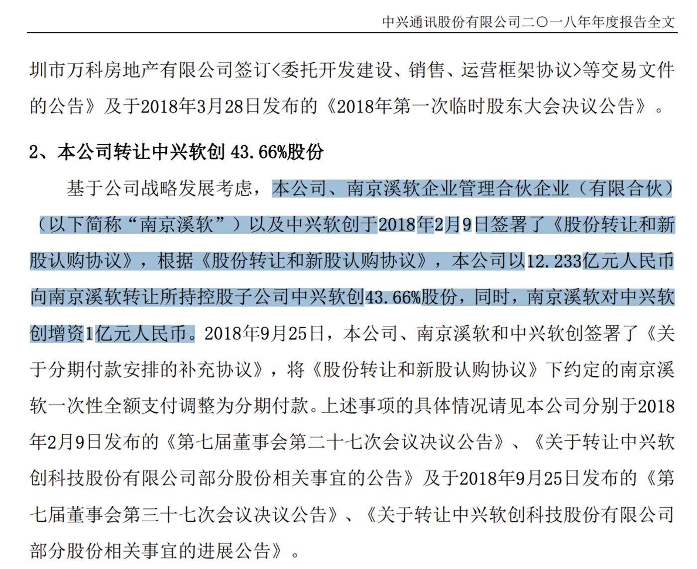 2018年,受美国制裁,中兴通讯内忧外患之下,以12.23亿元将浩鲸科技43.66%股份出售给阿里系资本南京溪软企业管理合伙企业(有限合伙)(以下简称“南京溪软”),与此同时,阿里系向浩鲸科技增资1亿元。