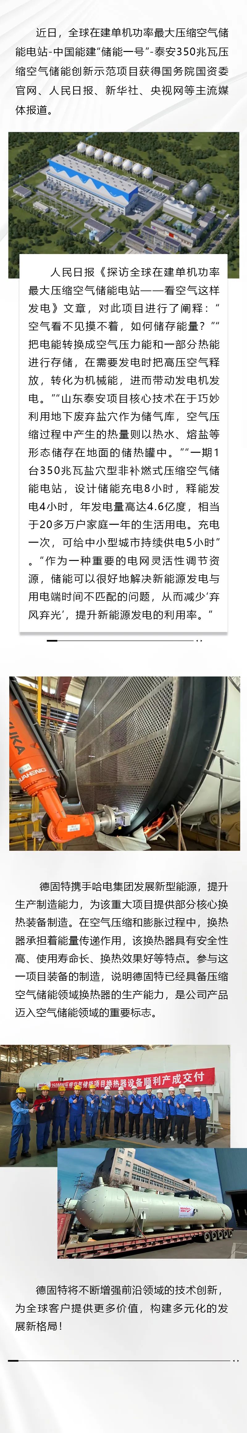 拓展新型储能市场:德固特助力全球在建最大单机功率压缩空气储能电站