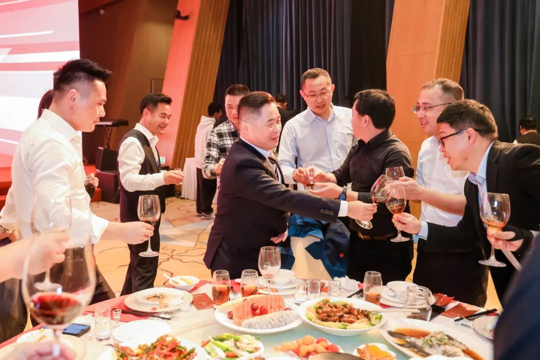 接下来是祝酒环节。公司领导和嘉宾共同上台,与现场所有人共同举杯,为过去一年的辉煌成就和未来的美好前景共同祝贺!相信自己、相信梦想!