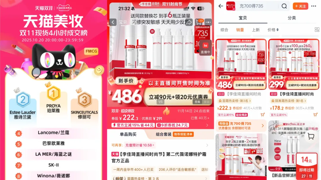 贝泰妮盈利端改善与现金流优化,源于“高质量增长”转型框架下两项核心策略的有效落地。一方面,公司以“一个中心两个基本点”为核心战略指引,即以品牌建设为中心,以会员运营及全域协同增长为基本点,通过会员分层运营、权益创新及差异化品牌策略提升运营效率;另一方面,坚持产品与渠道优化,落实渠道稳价维价、减少促销权益占比,同时精简产品系列、聚焦核心大单品与爆品,实现资源集中投放。这些策略的成效在市场端已得到印证,双11大促期间,薇诺娜表现突出,10月20日现货4小时成交榜中位居TOP8,其天猫旗舰店近30天内,特护霜与防晒霜两款核心单品分别有40W+和30W+付款量,其中防晒霜位列隔离霜热卖榜TOP1。同时多品牌矩阵协同效应初步显现,瑷科缦在天猫美妆国货新品牌中斩获第二名,薇诺娜宝贝稳居婴童洗护赛道榜单前列,姬芮在妆前乳品类表现突出,投资品牌浴见跻身抖音身体洗护品牌榜前十,多元化增长路径逐步清晰。