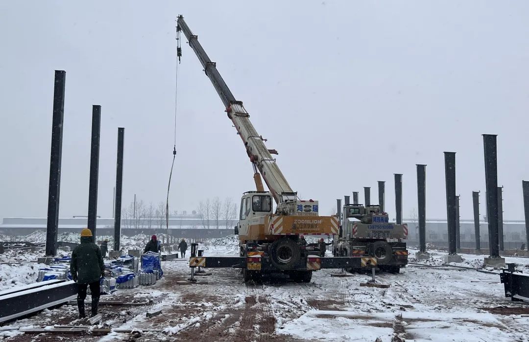 凛冽寒风、满天飞雪。入冬以来,西洞庭强冷空气接踵而至,雨雪天气给施工带来了诸多不便。面对考验,项目建设依然如火如荼,晓鸣股份与河南岑腾建设、山东四方新域、山东泰信等项目施工方在严格落实冬季施工安全的同时,顶风冒雪、连续奋战、抢抓节点,掀起冬季施工大干热潮,最终提前2日完成上梁。
