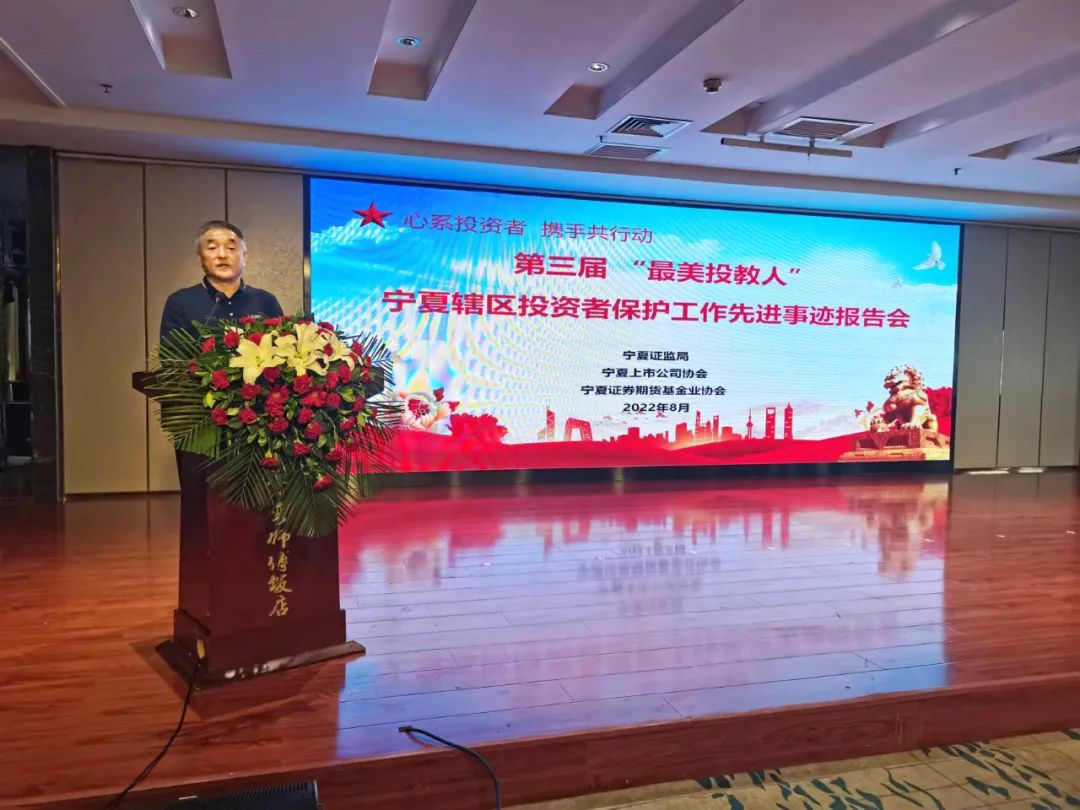 8月29日,在宁夏证监局指导下,宁夏上市公司协会、宁夏证券期货基金业协会举办第三届“最美投教人”宁夏辖区投资者保护工作先进事迹报告会。宁夏上市公司协会副会长、晓鸣股份董事长魏晓明受邀出席,公司投关负责人郭磊荣获“最美投教人”荣誉称号。