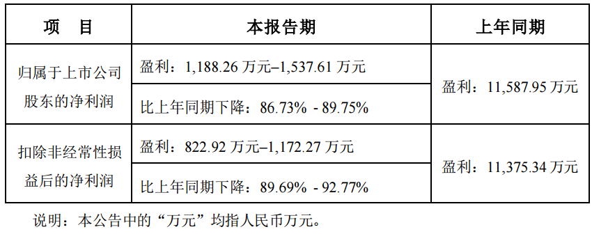 1月29日,格林精密发布2023年度业绩预告称,2023年归属于上市公司股东的净利润为1,188.26万元-1,537.61万元,同比预降86.73%-89.75%;扣除非经常性损益后的净利润为822.92万元-1,172.27万元,同比预降89.69%-92.77%。