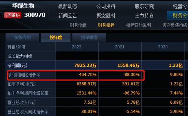 2021年,华绿生物净利润骤降88%,从2020年的1.33亿元下降至1550.46万元。
