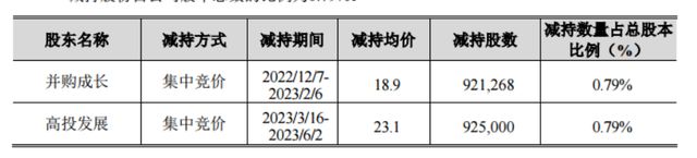 截至公告披露日,并购成长累计减持公司股份921268股,占公司总股本的0.79%,高投发展累计减持公司股份925000股,占公司总股本的比例为0.79%。