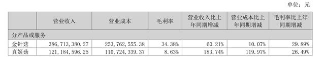 半年报显示,华绿生物金针菇营收比上年同期增长60.21%,毛利率增长了29.89%。也就是说,华绿生物净利润涨幅超330倍的大功臣,是金针菇。