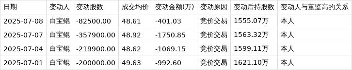 深交所公开信息显示,7月8日,立高食品董事白宝鲲在竞价交易公司股票,减持股数8.25万股,成交均价48.61元,变动金额401.03万元,变动后持股数为1555.07万股。