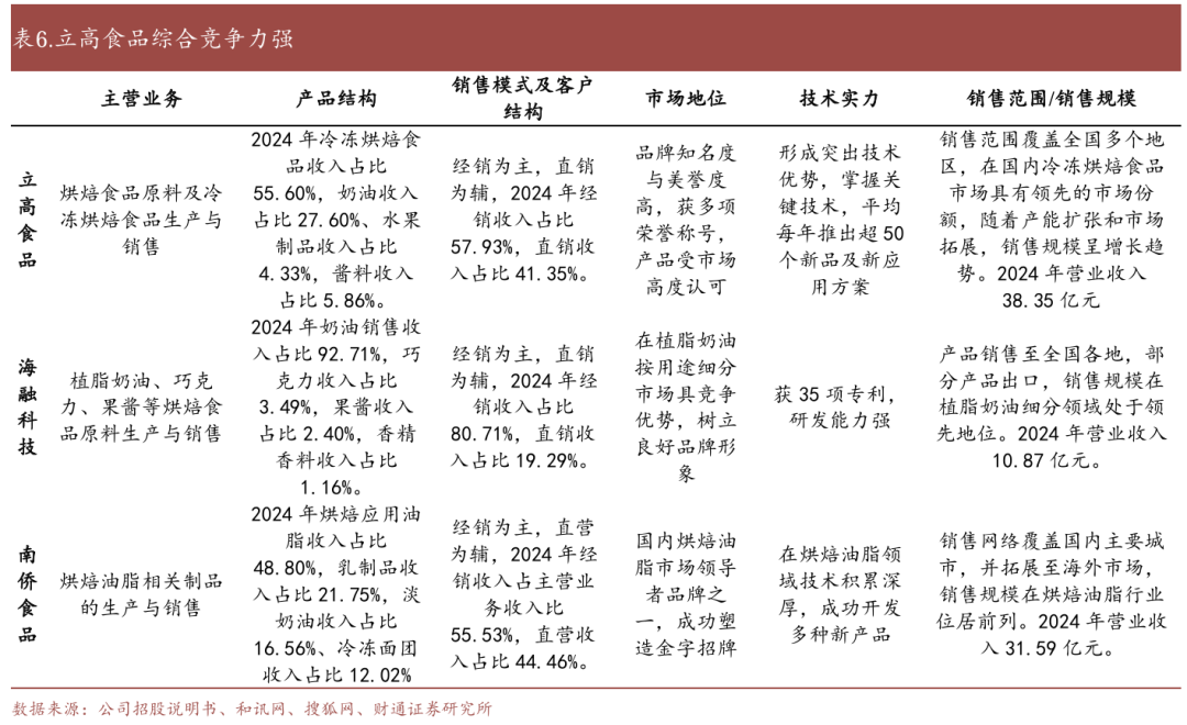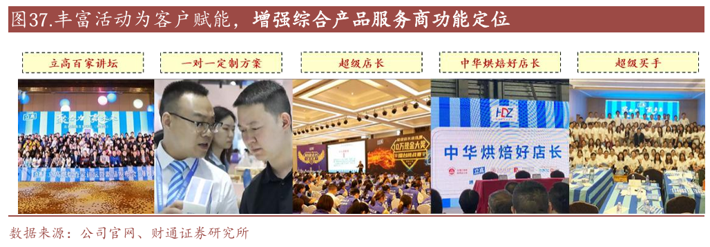优化组织架构,强化研发效能:我们在第一部分分析道,通过组织架构的整合,使得公司的销售团队成为一支烘焙原料全品类覆盖的队伍,为合作客户提供渠道开发、销售方案、产品技术、售后服务、人才培育等全方位的支持,也通过品鉴会、立高食品百家讲坛等活动为客户赋能,强化了公司的竞争力,更提高了公司一站式综合产品服务商的功能定位。另一方面,通过全链条整合,从上游奶油、馅料到下游成品的无缝对接,降低了中间环节的成本损耗,提升了整体生产效率;快速响应市场需求,从原料选择到成品定制,形成高效灵活的供应链体系;渠道协同与服务赋能,公司通过为商超和餐饮客户提供整体解决方案,成功实现了品类赋能和市场渗透的双重目标。