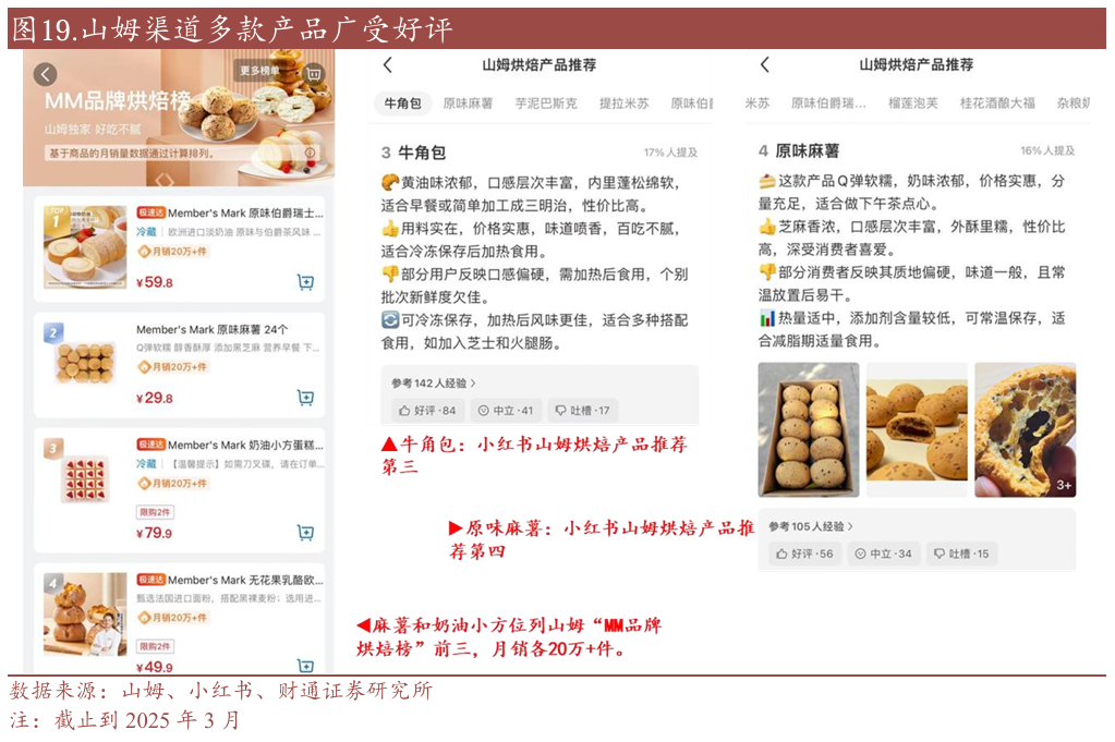 2024年商超渠道受产品调整等影响有所承压,2025年或迎来快速增长。公司2024年商超渠道有所承压,我们认为与渠道客户调整产品结构等因素有关。而在2024年下半年,公司已上市和储备多款新品,有望再次拉动渠道增长。以新品“奶油小方”为例,进入山姆后曾经成为山姆烘焙榜第三名,仅次于山姆明星产品瑞士卷和麻薯,为公司2025年在山姆渠道的推新与增长奠定基础。此外,通过公司产品的表现,我们认为公司在渠道产品的适配度和成功率上均有提升,这也是管理改善的表现之一。