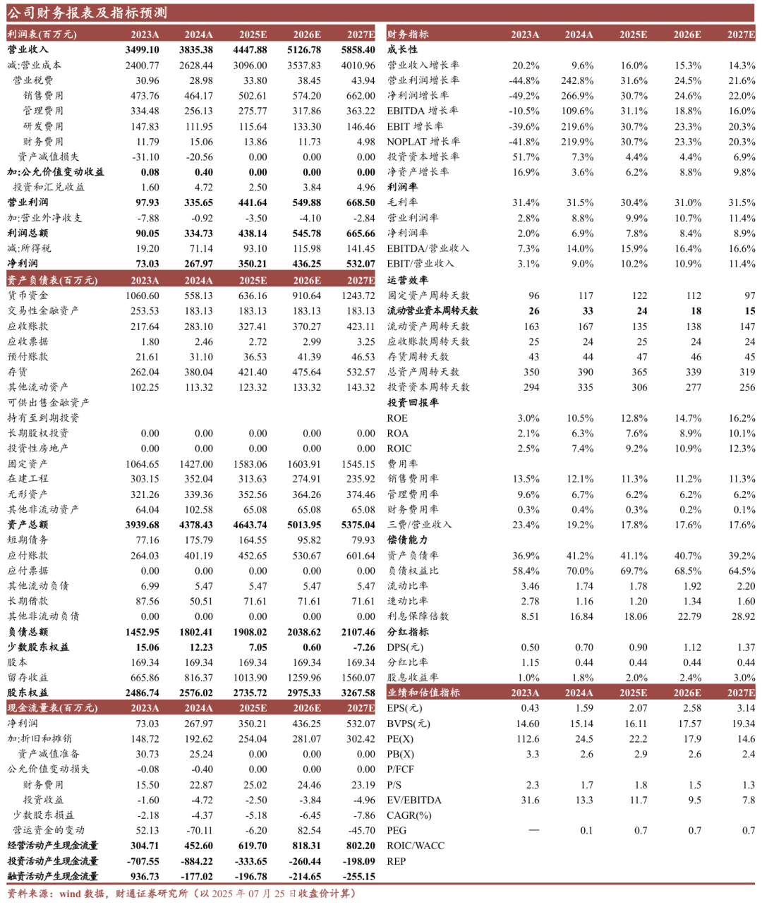 3)费用率:假设2025-2027年公司销售费用率为11.3%/11.2%/11.3%;管理费用率为6.2%/6.2%/6.2%,主要系公司持续对费用进行优化加强生产效率。
