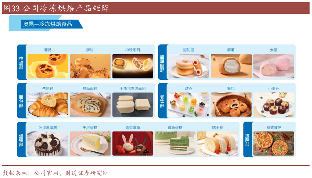 产业链上下游布局:从原料到成品,从定制化到标品,公司的综合服务能力持续提升。1)上游,多元化布局原材料与核心原料。公司建立了多规格多品种人造奶油、果馅、奶酱、巧克力酱等多个品类的布局,加强奶油成本的控制;此外建立油脂公司,进而减弱棕榈油等原材料的波动。2)中游,产品开发与多元化产线建设。通过整合项目组为产线管理模式,使研发和生产更聚焦、产品渠道协同更高效。同时建立总部、华北、华东等研发中心,注重技术升级,在关键产品线上通过工艺改进,如奶油产品的稳定性、挞皮的创新形态等,推动细分品类的深度渗透和渠道扩展,也提升客户定制化产品的响应能力。3)下游,从半成品延伸至终端成品。半成品如甜甜圈、挞皮已成为公司的战略大单品;在成品领域的布局,通过与山姆等头部客户的合作,培养明星大单品。