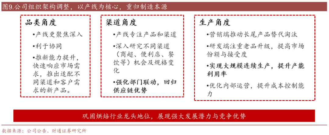 公司通过将项目组合并为产线,重归制造本源,在优化内部运营、提升成本控制能力、增强渠道适配性以及推新等方面均取得了积极成效,进一步巩固了其在烘焙行业的龙头地位,展现出强大的发展潜力和竞争优势。