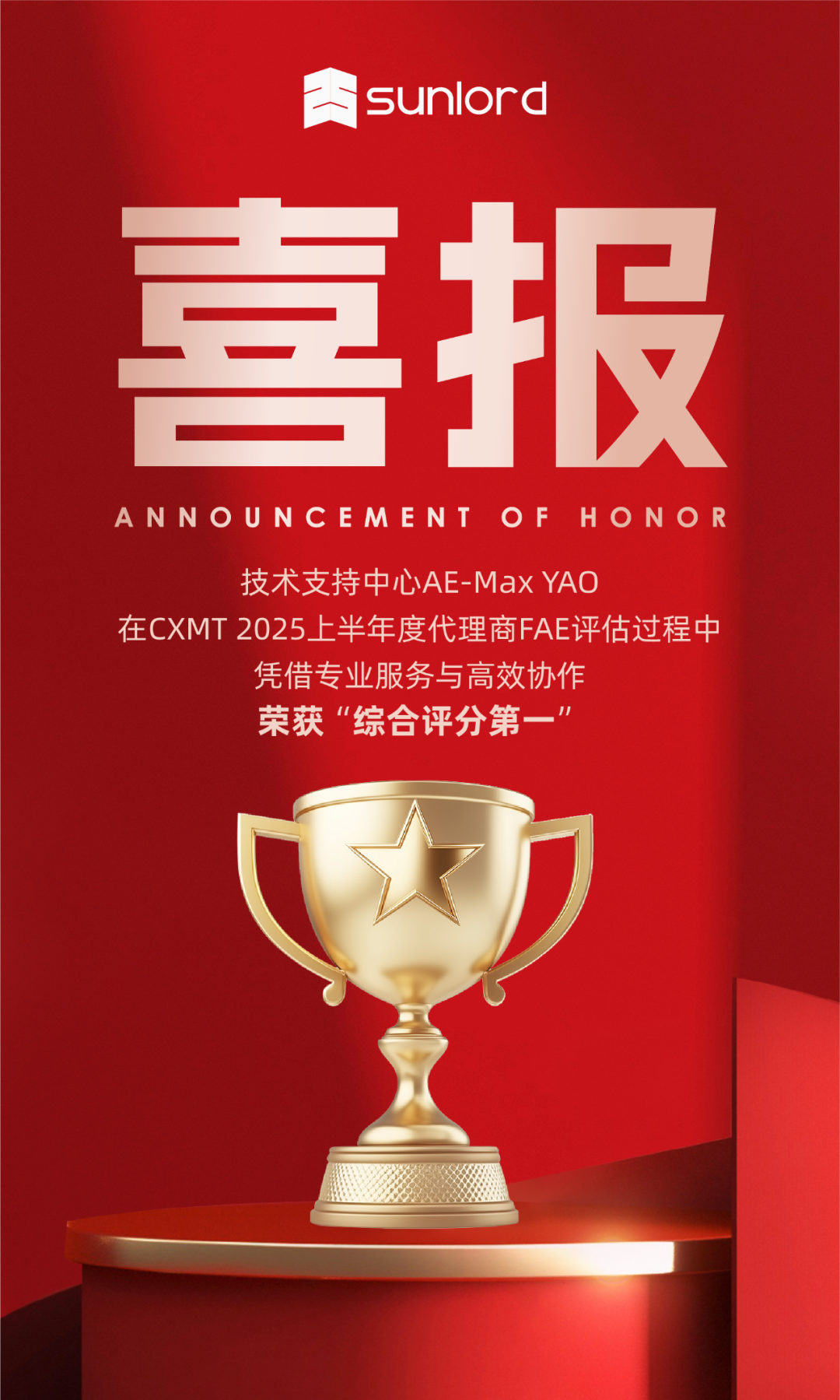 喜报丨商络电子技术支持中心AE荣获CXMT 2025上半年代理商FAE“综合评分第一”