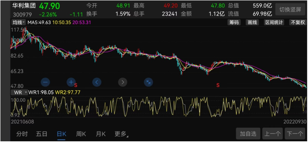 业绩不错,机构看好,华利集团的股价却偏偏一路阴跌。截至2022年9月30日收盘,公司报收于47.9元/股,盘中再次触及近一年最低点。