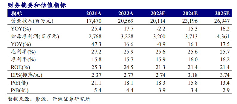 (1)盈利能力:公司在行业波动及营收变动情况下有效管控成本及费用,预计2023Q4毛利率同比增长、环比持平略降,预计全年毛利率保持平稳。2023年净利率+0.2pct至15.9%,扣非净利率+0.4pct至15.8%,2023Q1-Q4净利率分别为13.1%/17.6%/16.3%/15.7%,分别同比-2.6/+1.7/+0.2/+0.7pct。(2)汇兑收益:预计2023年汇兑收益约6000万元(2022年为8217万元)。