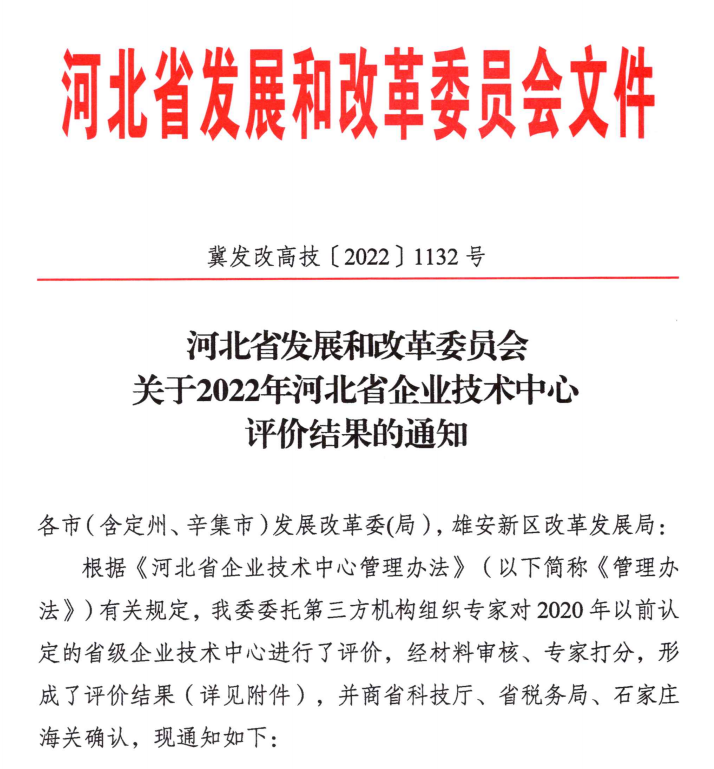 8月29日,河北省发展和改革委员会发布了2022年河北省企业技术中心评价结果,中红普林集团旗下中红普林医疗用品股份有限公司(简称:中红医疗)技术中心获得90.4分,评为优秀。