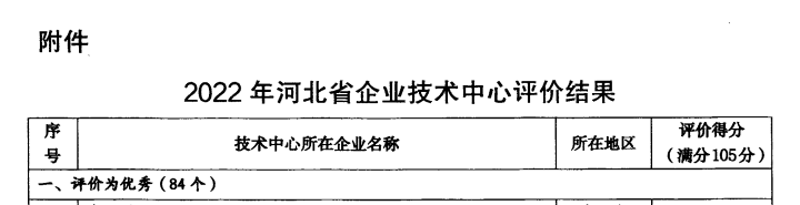 河北省委十届二次全会精神指出,要强化创新驱动引领作用,加快提升全省战略型新兴产业和主导产业技术创新能力,促进构建现代化产业体系。作为河北省创新驱动发展、产业转型升级的重要支撑平台,省级企业技术中心是产业关键技术攻关的重要阵地。2022年河北省企业技术中心评价根据《河北省企业技术中心管理办法》和河北省《关于加快提升产业创新能力的若干意见》有关规定,省发改委委托第三方机构组织专家,对2020年以前认定的省级企业技术中心进行审核和打分评价。此次参与评价的河北省省级企业技术中心共有666家,仅84家得分90分(含)以上,获评优秀。