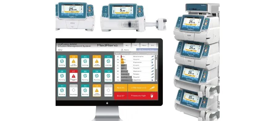 迈德瑞纳输注产品4.3寸全彩色触摸显示屏,参数及运转信息一目了然。同时可多层叠加,装设提手,既不占用科室空间,又便于转移。防水防尘等级为IP34,防止直径大于2.5mm的固体物质进入,全方位防水溅。设备控制精度高,配备多个内置传感器可以及时了解设备信息。为医护人员大大减轻工作量,设置好参数自动输注,无需干预,让护理工作更加便捷。
