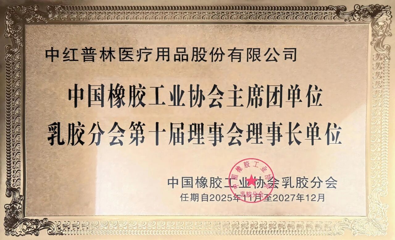 中红普林医疗用品股份有限公司当选中国橡胶工业协会乳胶分会新任理事长单位。