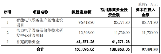 9月6日,苏文电能发布的向特定对象发行股票募集说明书(更新2022年半年报)显示,本次向特定对象发行股票拟募集资金总额不超过138,863.06万元,扣除发行费用后的募集资金净额将分别用于智能电气设备生产基地建设项目、电力电子设备及储能技术研发中心建设项目、补充流动资金。