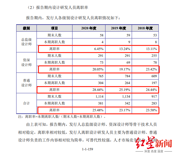 对此,尤安设计表示,报告期内,公司总监级设计师、资深设计师等骨干技术人员相对稳定,离职率相对较低,公司离职设计研发人员主要为普通设计师。普通设计师负责的工作内容相对较为简单,可替代性较强,人才市场竞争充分,因而其流动性相对较高,符合发行人所属建筑设计行业特点。