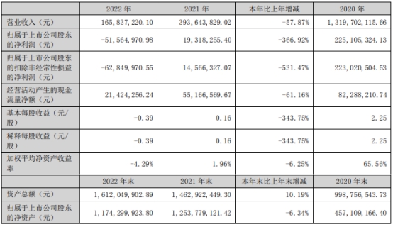 2022年,致远新能基本每股收益为-0.39元/股,上年同期为0.16元/股;加权平均净资产收益率为-4.29%,上年同期为1.96%。