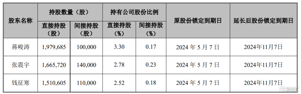 蕾奥规划(300989.SZ)公布,公司股票于2021年5月7日上市,自2021年6月4日至2021年7月2日,公司股票连续20个交易日的收盘价均低于发行价51.62元/股,触发相关承诺的履行条件。公司控股股东、实际控制人以及相关董事、高级管理人员持有限售流通股的情况及本次延长限售股锁定期如下表所示: