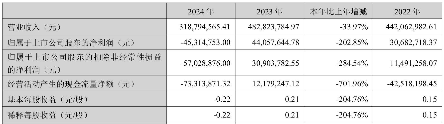 4月27日晚间,蕾奥规划(300989)发布2024年年报,公司去年实现营收3.19亿元,同比下降33.97%;归属于上市公司股东的净利润亏损4531万元,由盈转亏,同比减少202.85%。同时,这也是公司自上市以来首次出现亏损。