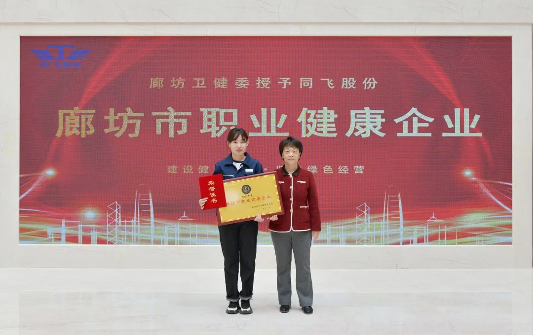 2022年以来,按照河北省和廊坊市创建职业健康企业的安排部署,在“企业创建、基层推荐、层层筛选、专家审核”的基础上,同飞股份荣获河北省“职业健康企业”和廊坊市“职业健康企业”称号。