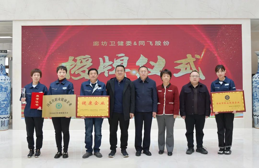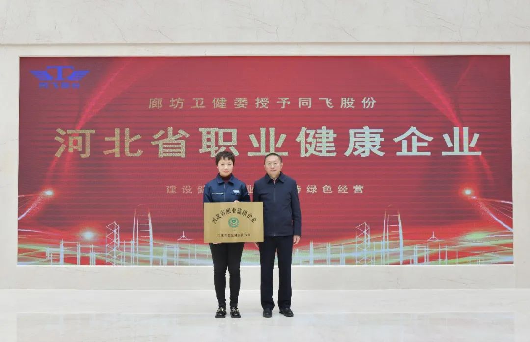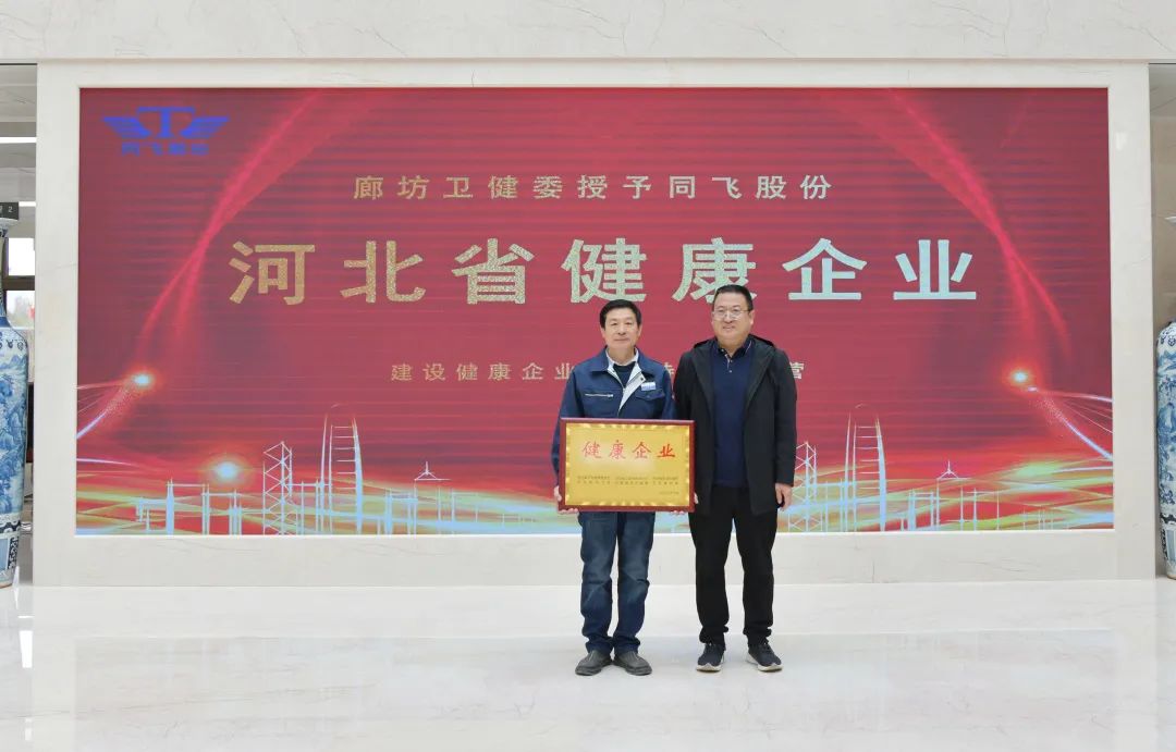 为推动健康河北建设,提升企业健康保护意识,保护和促进职业人群身心健康,河北省组织开展了全省“健康企业”建设活动。经过企业申报、县级推荐、市级评估等程序,同飞股份荣获河北省“健康企业”称号。
