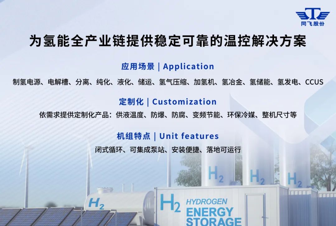 氢能,作为未来能源转型的关键力量,其产业链涵盖制氢、储运、应用等多个复杂环节。从制氢电源的高效转化,到电解槽的精准电解,再到氢气的分离、纯化、液化,以及储运、氢气压缩、加氢机的稳定运行,每一环节都对温度控制有着严苛要求。而同飞股份,凭借深厚的技术积累与创新实力,为氢能全产业链量身打造了一系列稳定可靠的温控解决方案。