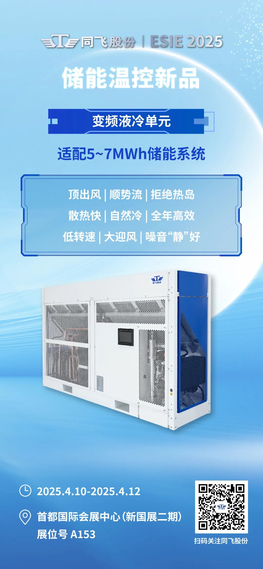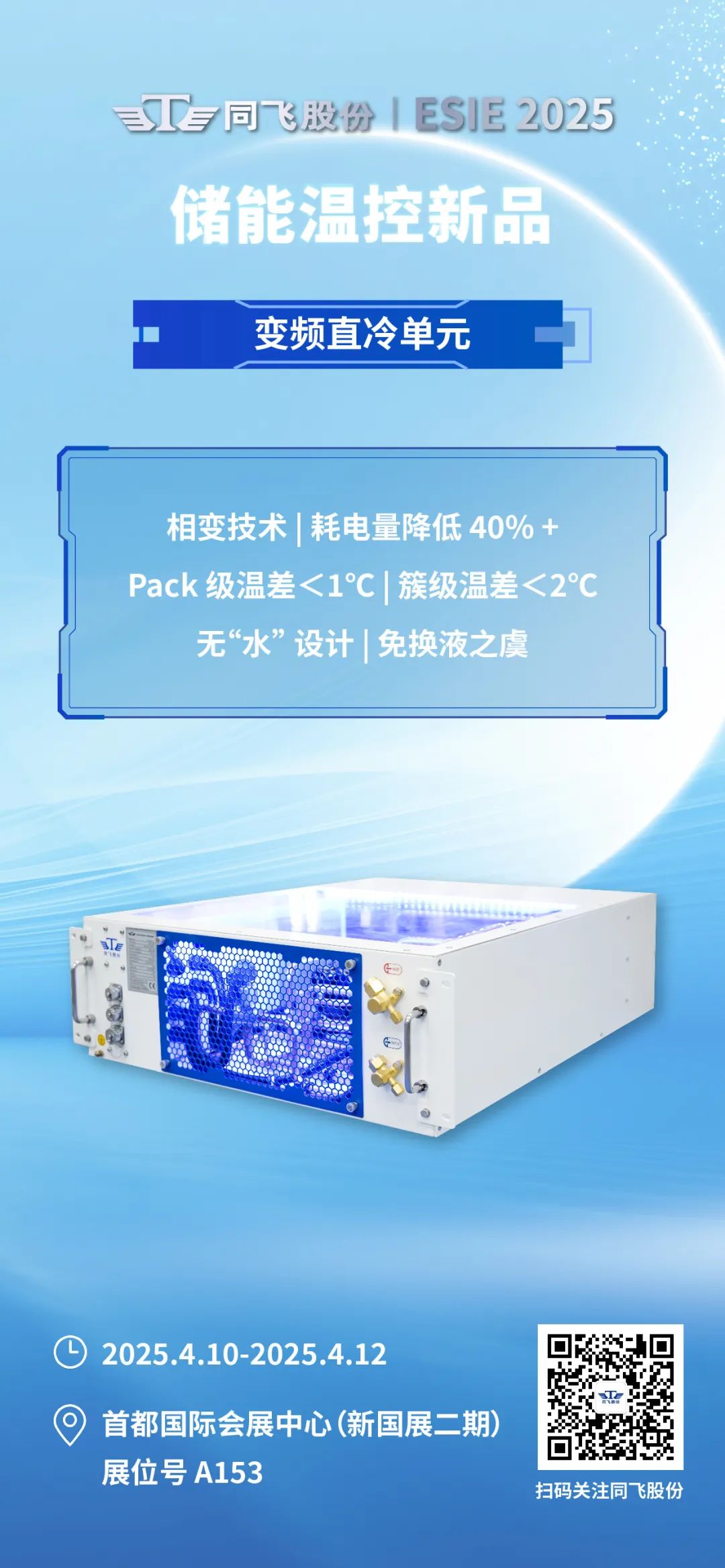 同飞股份将在本届ESIE 2025重磅推出三款创新产品——变频液冷单元(顶出风式)、变频直冷单元、PCS专用冷却单元。
