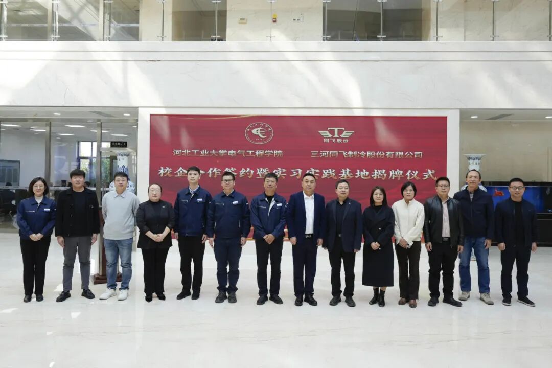 为推动教育链、人才链与产业链、创新链深度融合,构建校企协同育人长效机制,10月27日,河北工业大学电气工程学院党委书记李永建带领学院教师团队及优秀学子到访同飞股份,同飞股份总经理张浩雷携管理层热情接待。双方围绕实习实践基地升级、人才联合培养、科研项目协作等议题展开深度研讨,成功签署校企合作框架协议并为“实习实践基地”揭牌,标志着双方合作从基础对接迈向精准协同的新阶段。