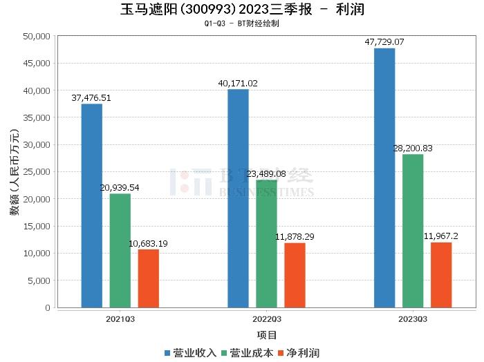 综合来看,玉马遮阳公司2023年三季度的经营状况稳健,总资产、净资产均有所增长,净利润微增,现金流量净额增长显著。这表明公司在行业中的地位稳固,经营状况良好。