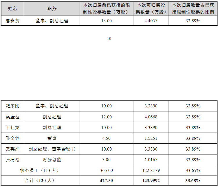 由于玉马科技此次激励计划第一个归属期公司层面业绩考核仅略高于触发值,因此按照规定,公司层面可归属比例为67.78%,不可归属的比例为32.22%,不可归属的限制性股票由公司作废。对于激励对象,玉马科技还设置了个人层面绩效考核要求。在公司此次激励计划的121名激励对象中,5名激励对象2024年年度考核结果为80分≤S<90分,个人层面归属比例为80%;1名激励对象2024年年度考核结果为S<60分,个人层面归属比例为0%;其余115名激励对象个人层面归属比例为100%。据每经资本眼专栏记者计算,玉马科技参与此次激励计划的高级管理人员合计获得的股票数量占全部授予股票的比例约为14.71%。