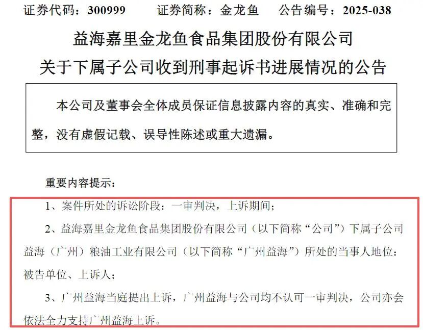 业绩的“回血”并不能掩盖金龙鱼依然身处重重风波。2025年11月,其核心子公司广州益海卷入一起10年前的旧案一审宣判:被判构成合同诈骗罪(从犯),需对高达18.81亿元的损失承担共同退赔责任。尽管金龙鱼管理层强烈不认同判决,坚定上诉并称“根本错误”,但巨大的法律责任风险与汹涌的舆论质疑,无疑是悬在头顶的利剑。