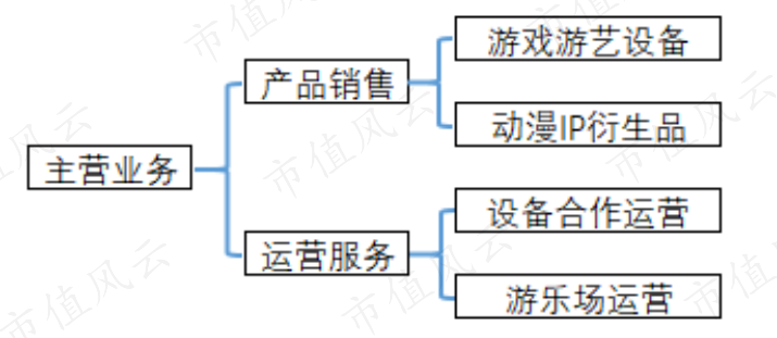 从收入结构看,公司主营业务分两大类,一是产品销售,包括游戏游艺设备销售和动漫IP衍生品销售,二是运营服务,包括设备合作运营和游乐场运营。