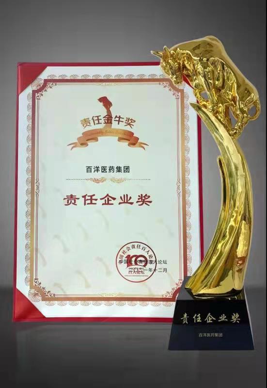 近日,由人民日报社《国际金融报》主办的“第四届CSR先锋论坛暨2021颁奖典礼”以及由中国社会责任百人论坛、责任云研究院主办的“2021年责任之夜暨‘责任金牛奖’颁奖典礼”两大年度CSR盛会落下帷幕。凭借在公益慈善事业、企业社会责任领域的持续耕耘和突出贡献,百洋医药集团分别荣膺“年度社会责任贡献企业奖”、“责任企业奖”两项CSR大奖,公司长期以来践行企业社会责任取得的杰出贡献得到了充分认可和肯定。