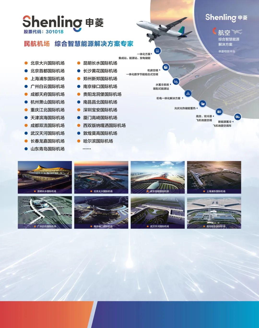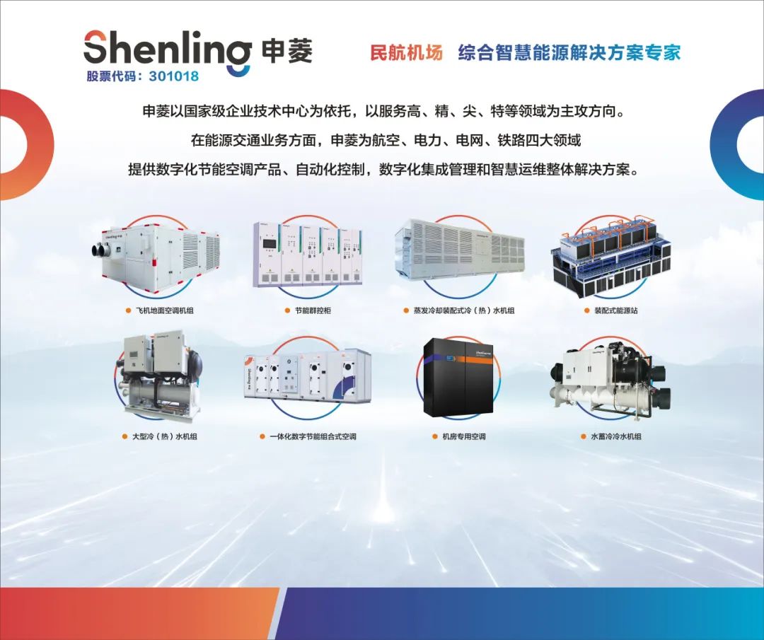 本次盛会,申菱主要向与会代表展示了民航机场综合智慧能源解决方案,包括一体化集成站与能源站、机房空调、一体化数字节能组合式空调、水蓄冷系统、高效飞机地面空调以及申菱特有的集成机电一体化解决方案。