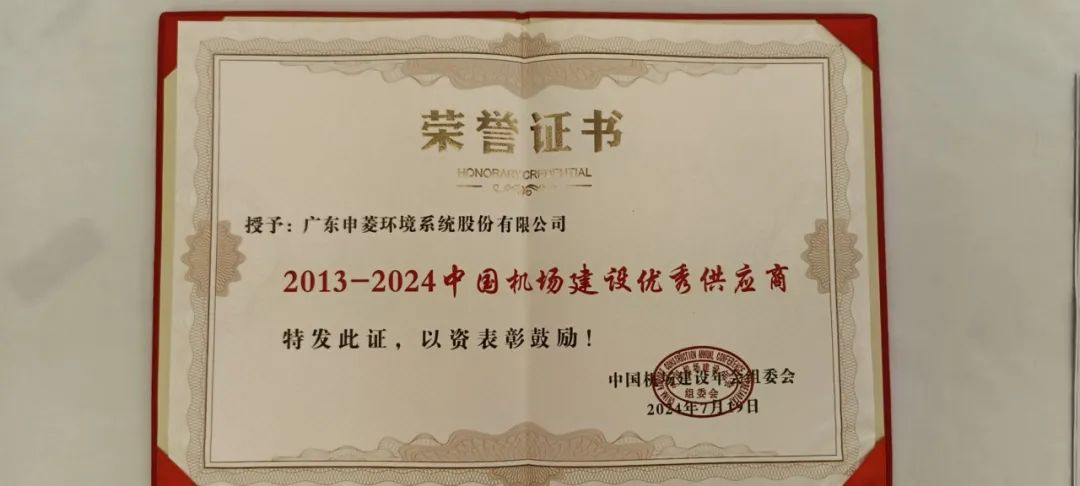 本届年会同步举办了“第十届中国机场建设优秀成果展”和“机场建设年会10年庆典”,庆典上表彰了为机场建设作出特别贡献的企业,申菱环境获“2013-2024中国机场建设优秀供应商”。
