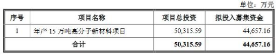 海泰科11月4日晚间发布《向不特定对象发行可转换公司债券预案》,预案显示,公司本次可转债的发行总额不超过人民币44,657.16万元(含44,657.16万元)。本次发行募集资金总额不超过人民币44,657.16万元(含发行费用),扣除发行费用后将投资于“年产15万吨高分子新材料项目”。