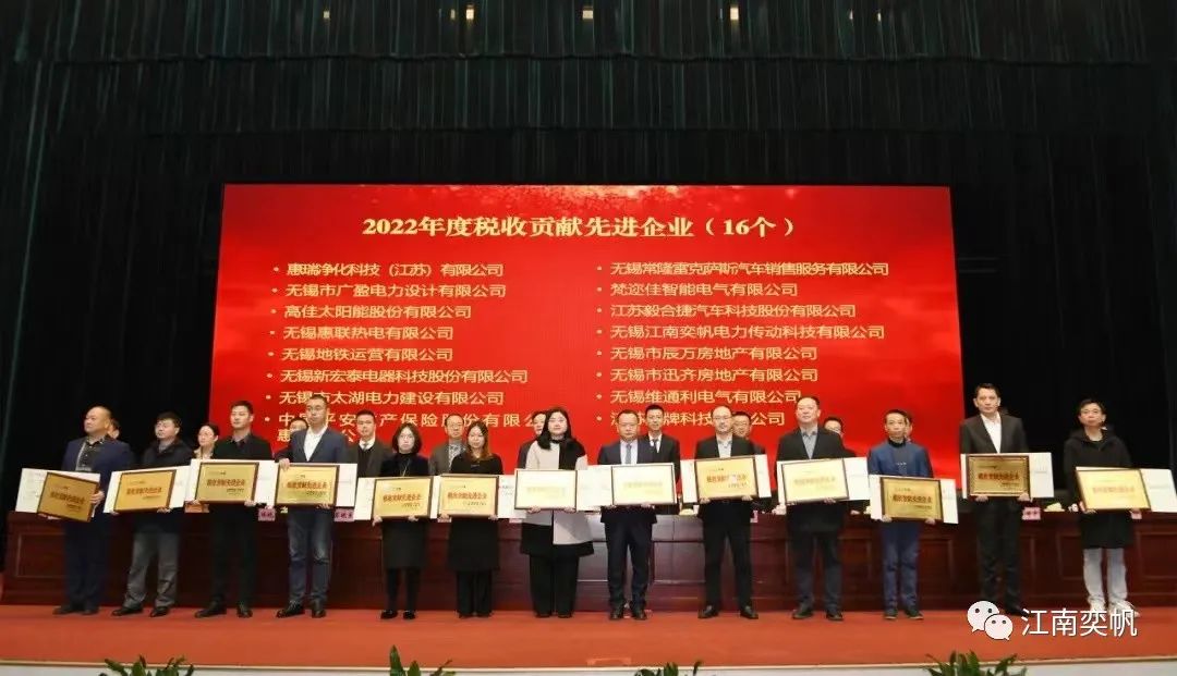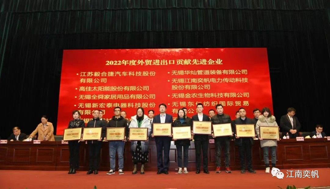 江南奕帆荣获“2022年度税收贡献先进企业”,“2022年度科技创新与人才工作先进单位”,“2022年度外贸进出口贡献先进企业”等荣誉称号!