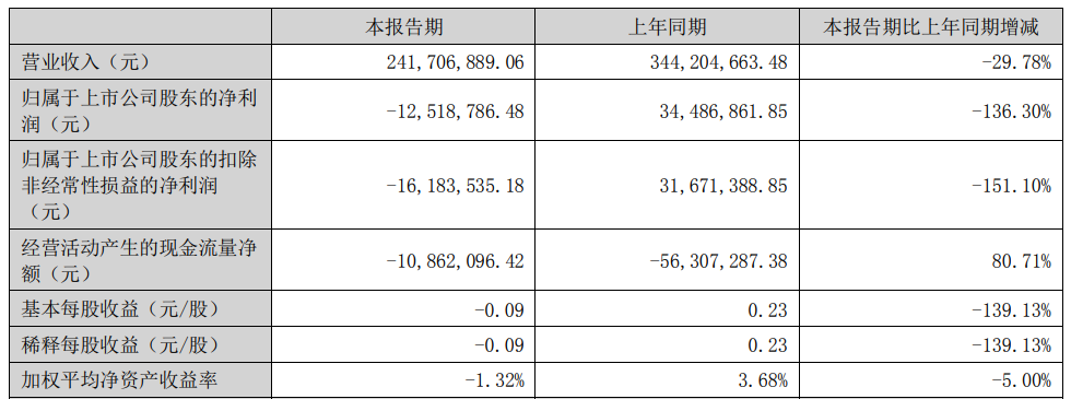 9月18日讯近日,华蓝集团(301027.SZ)发布2023年半年度报告。今年上半年,公司实现营业收入为2.42亿元,同比减少29.78%;归属于上市公司股东的净利润为-1251.88万元,上年同期为3448.69万元,同比由盈转亏;归属于上市公司股东的扣非净利润为-1618.35万元,上年同期为3167.14万元;经营活动产生的现金流量净额-1086.21万元,上年同期为-5630.73万元。