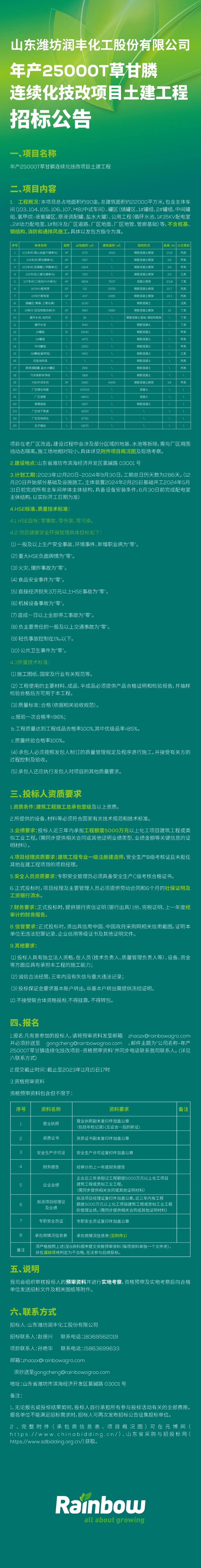 润丰股份年产25000T草甘膦连续化技改项目土建工程招标公告
