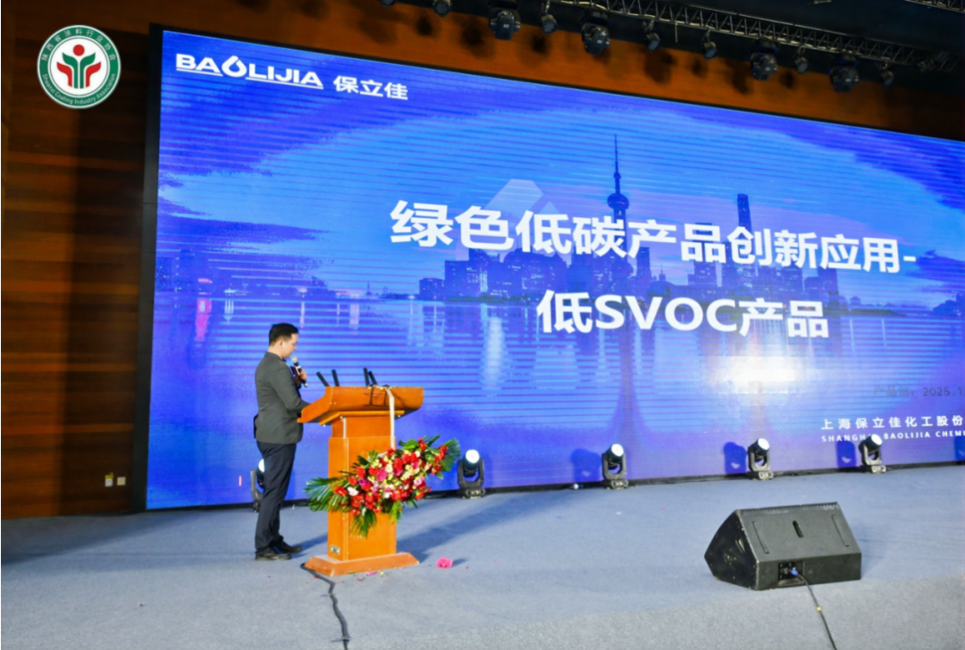 作为涂料行业绿色转型的积极践行者,保立佳在本次大会上充分展现了在低SVOC产品领域的创新实力。公司产品经理姚炜受邀发表“绿色低碳产品创新应用-低SVOC产品”主题演讲,凭借扎实的技术积累和丰富的实践经验,为现场嘉宾带来了一场聚焦绿色创新的干货分享。