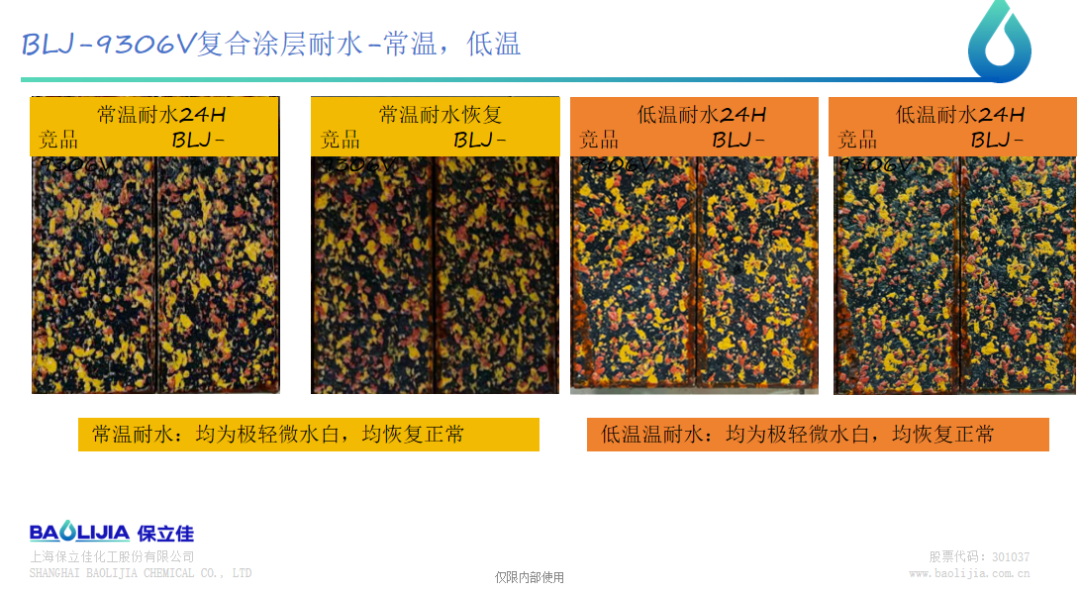 此外,姚工还分享了保立佳在低SVOC领域的其他创新成果:包括搭载BLJ-9306V低SVOC纯丙硅高光乳液的高性能高光罩面产品,兼具环保属性与优质装饰效果;以及低碳单组份自交联改色BLJ-2337产品,可实现单组份地坪改色、瓷砖改色、铁门改色等一款产品多种应用场景,凭借便捷施工与低碳优势,为存量建筑翻新等场景提供高效解决方案。这些创新产品精准契合当前涂料行业绿色低碳的发展趋势,得到了现场嘉宾的高度关注。