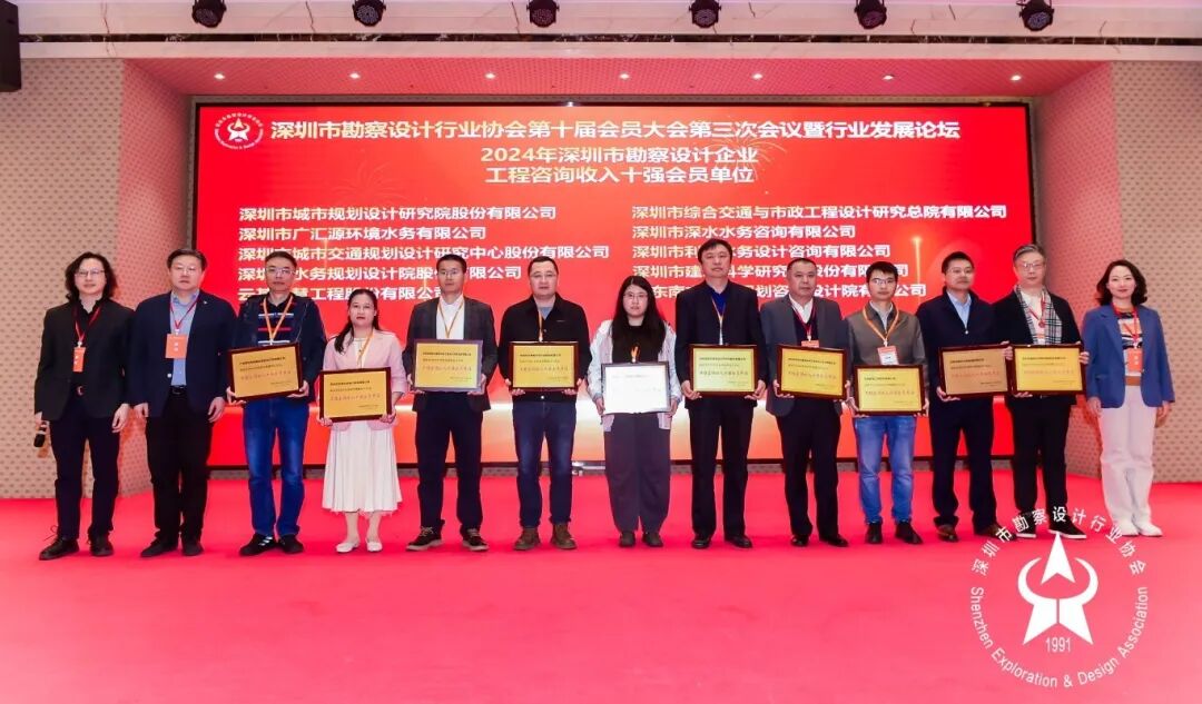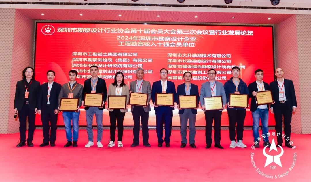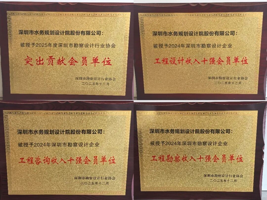 大会表彰环节,深水规院凭借稳健的业务表现与突出的行业贡献,荣获“2025年度突出贡献会员单位”称号。同时,公司在核心业务领域持续领跑,成功入选“2024年深圳勘察设计行业工程勘察收入十强”“工程设计收入十强”“工程咨询收入十强”,三大业务齐头并进,彰显综合竞争力。这份荣誉,既是对公司过往工作的肯定,更是驱动未来前行的动力。